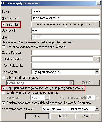 Użyj trybu pasywnego do transferu (jak w przeglądarce WWW)
