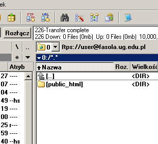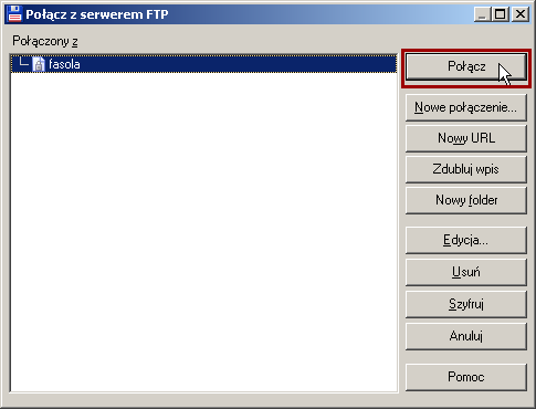 Od tej chwili wchodzimy na swoje konto klikając ikonkę "FTP" i zakładkę "fasola".
