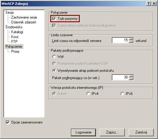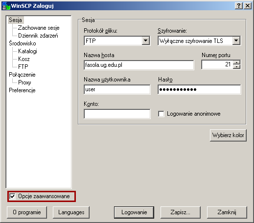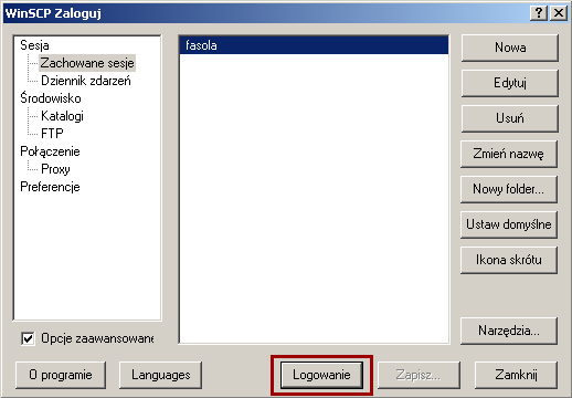 Konfiguracja programu WinSCP