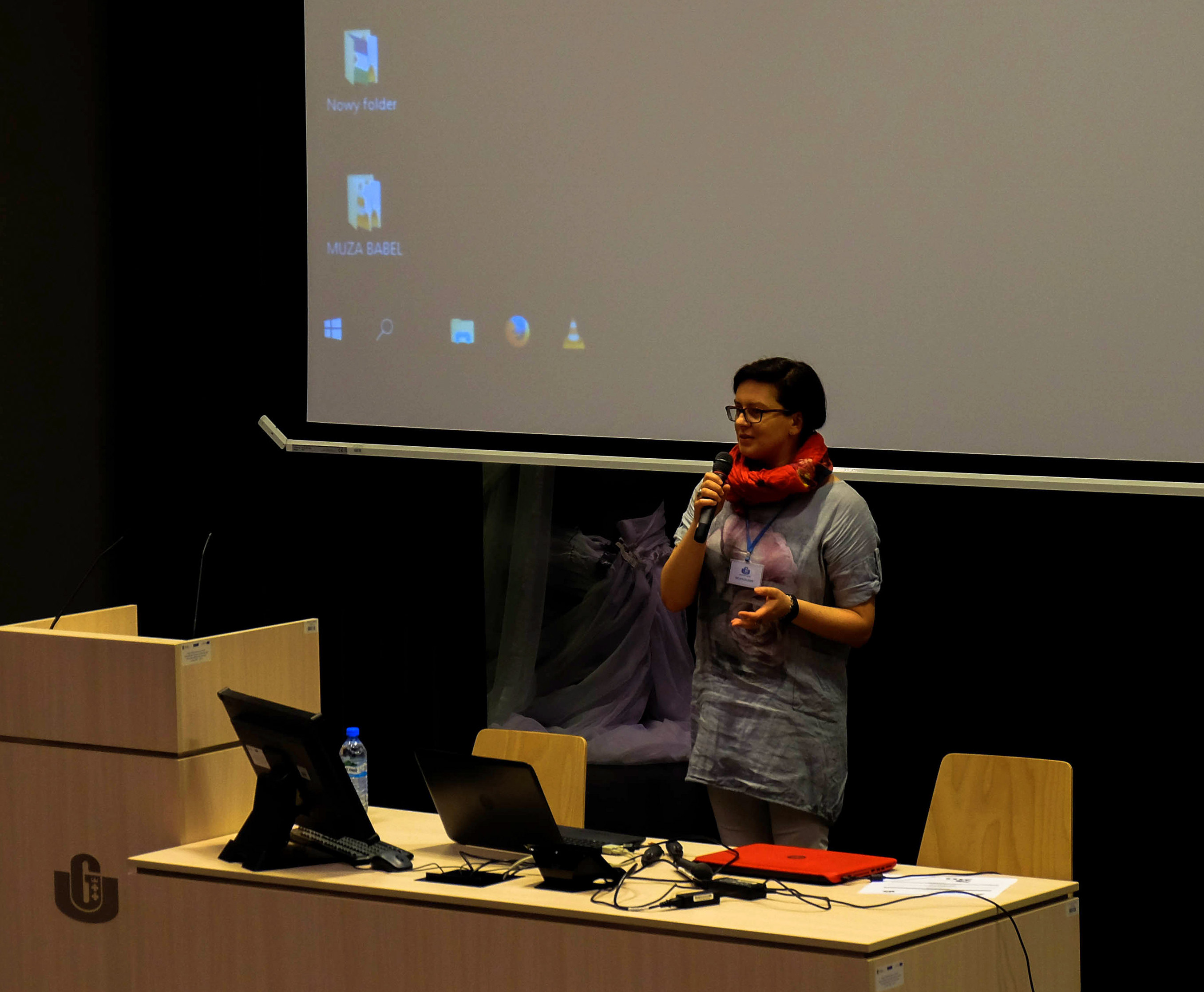 Ekipa od Social media liczyła sobie 3 osoby, które zadbały o to, by wszystkie wydarzenia z konferencji poszły w świat. Facebook, Twitter, Instagram, strona Wydziału – byliśmy wszędzie. To już chyba nasza specjalność. 🙂 Grupa wolontariuszy zajmowała się też rejestrowaniem uczestników i rozdawaniem im certyfikatów. Mieli też na głowie (nie dosłownie oczywiście) słuchawki, po które zgłaszali się uczestnicy zainteresowani polskim tłumaczeniem. Byliśmy na każde skinienie tak uczestników, jak i prelegentów. Odpowiadaliśmy na pytania, rozwiązywaliśmy problemy i pilnowaliśmy, żeby nikt się nie zgubił.